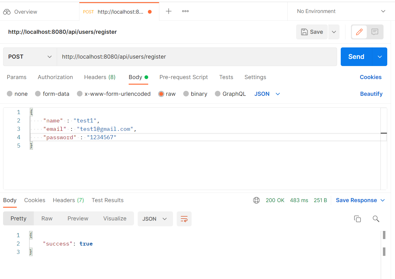 postman 에서 회원가입 진행하기